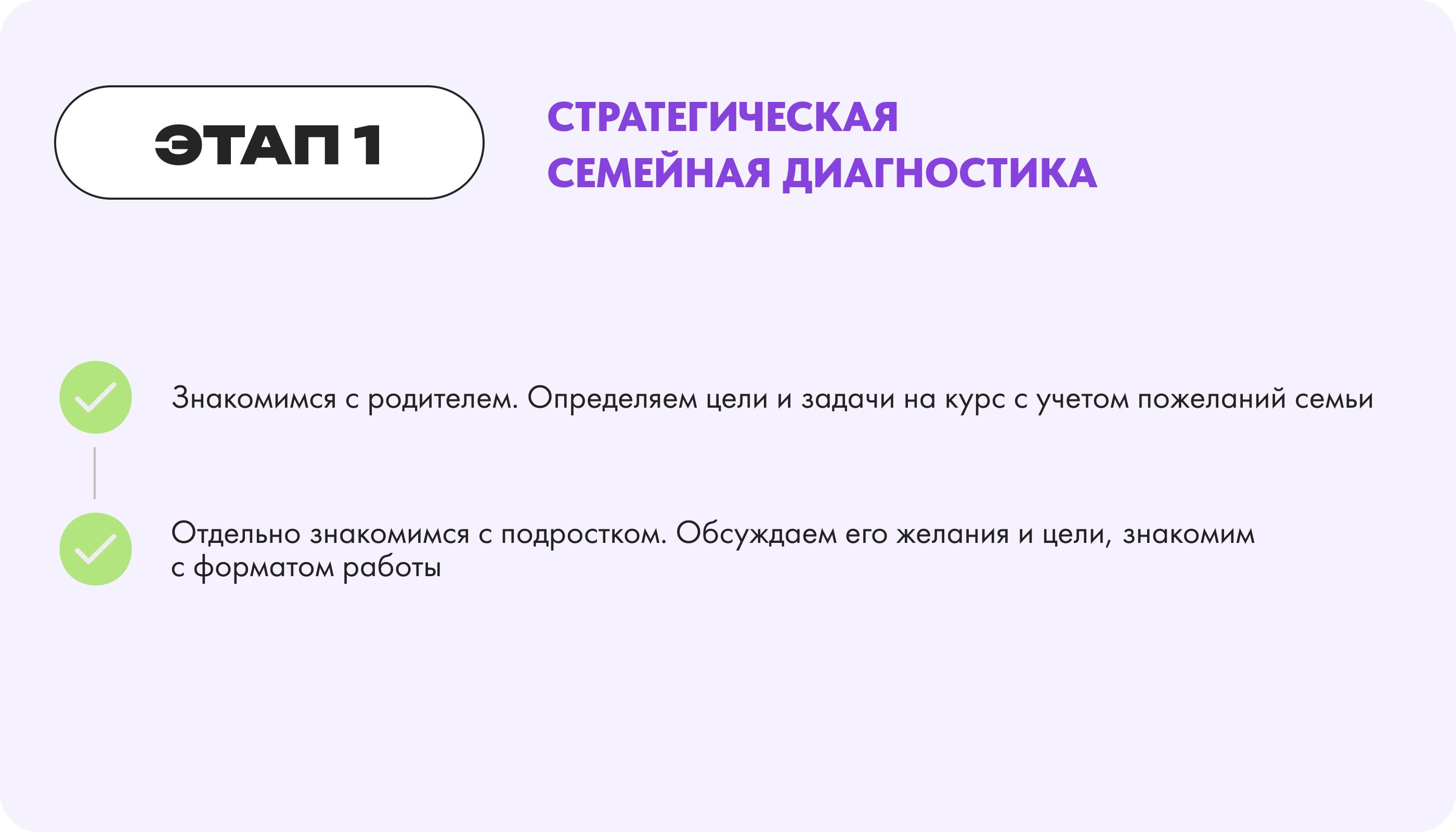 Отдельно знакомимся с подростком. Обсуждаем его желания и цели, знакомим с форматом работы